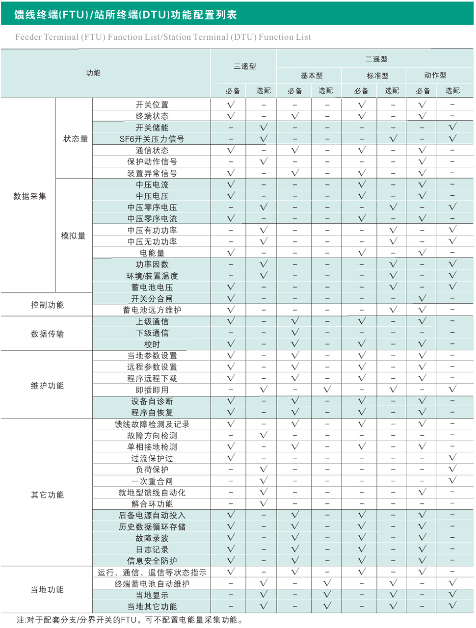 饋線終端(FTU)主要性能指標